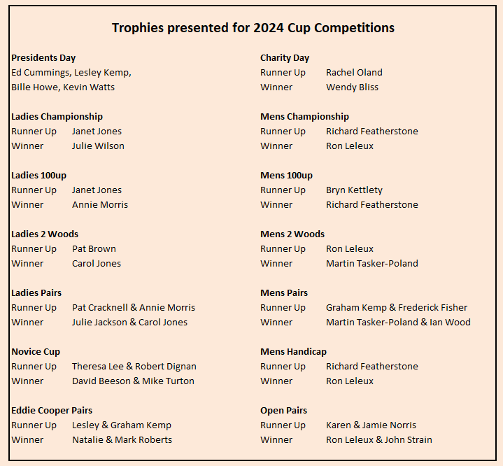 Thanks from President John to you all that helped out through the year and of course those that played in the matches.