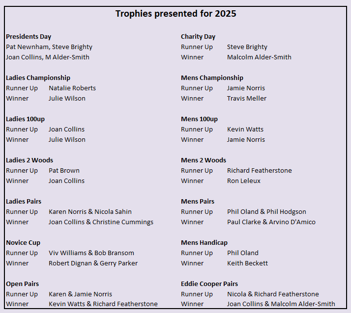 No trophy presentation day, however the winners of the Mens and Ladies Championships were played