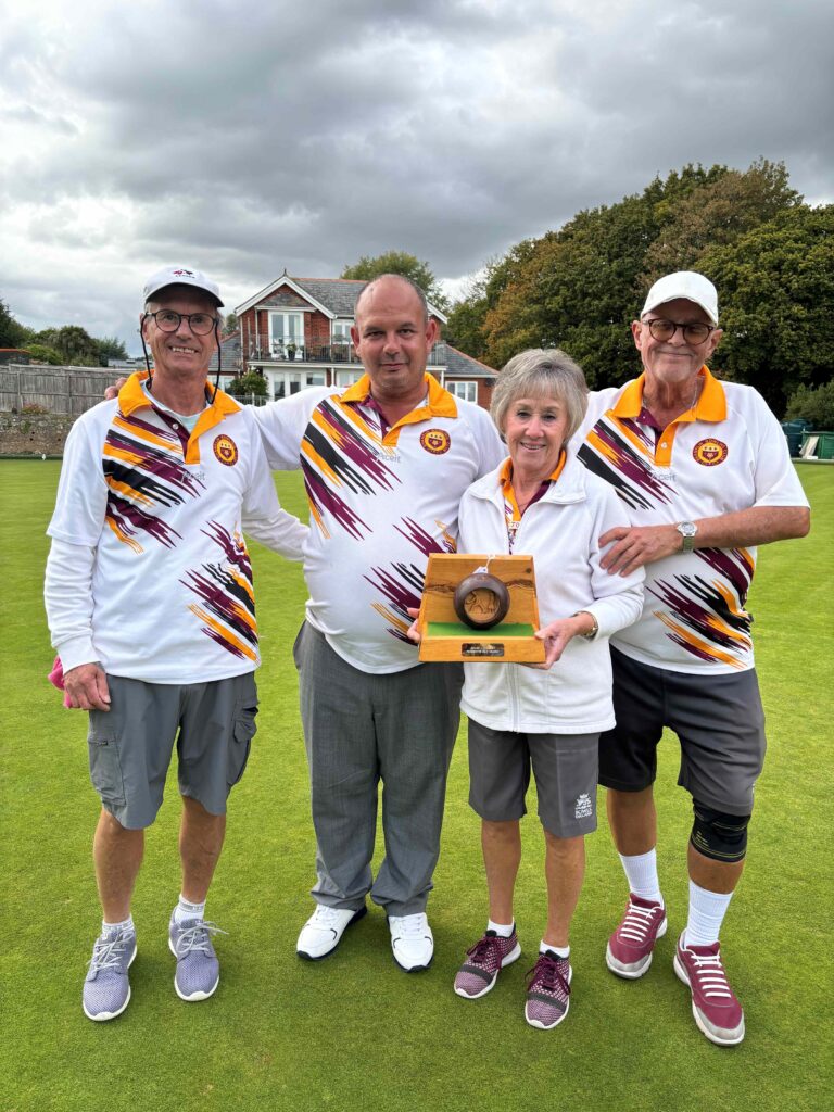 What a great day was had by all and to cap it off our men won the triples cup at sandown, Jamie Mitch and Mark along with the Pairs Darren and Travis (sorry no photo) The winners of the Presidents Trophy was Ed Cummings, Lesley Kemp, Kevin Watts and Bill Howe, they also go a hot shot as well !!!