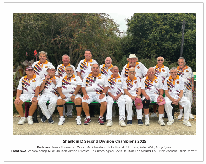 great achievements were had this season at shanklin, with the mens D Team being promoted to division one and the Ladies c team promoted to division two, along with the county 4 woods singles, fours, senior fours, triples and the ladies senior fours